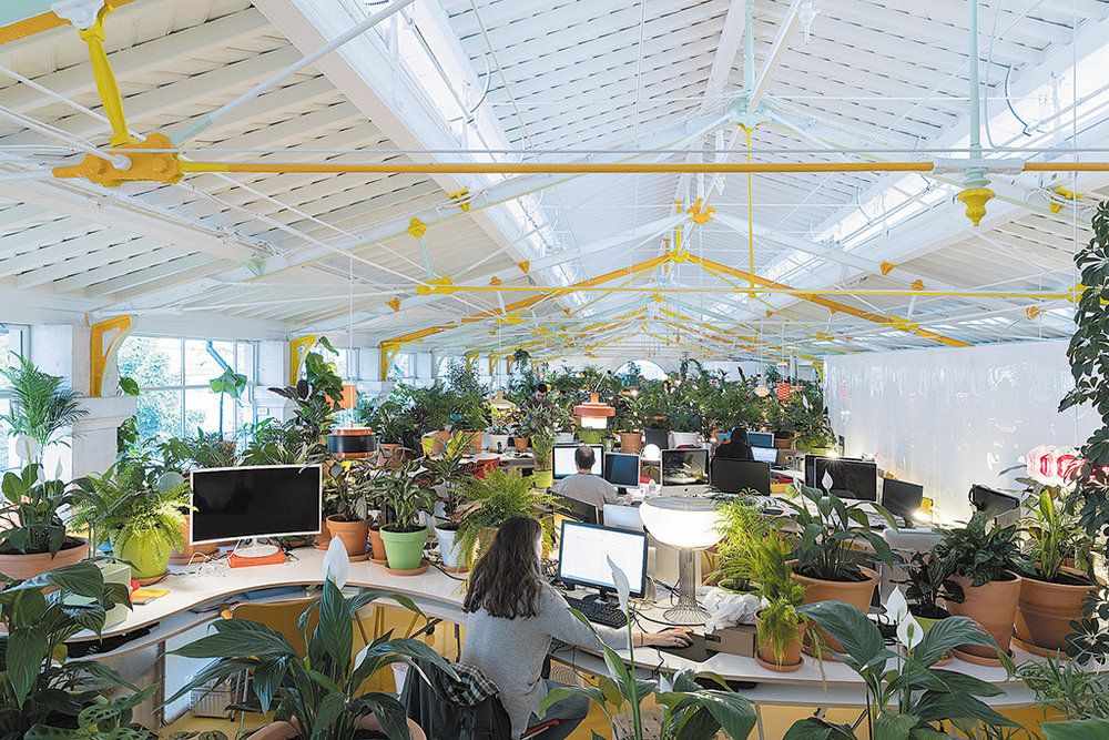 ‘Going green’ - The pot plants at Second Home in Lisbon[/caption] The answer is two-fold. First, office designers are introducing home comforts. At the offices it has designed for companies like Nike and Cisco, Studio O+A in San Francisco has introduced domestic touches like planters and vintage leather chests, and focused on natural materials like exposed wood. Secondly, there’s an increasing interest in “biophilic” office design – incorporating nature into the workplace. Among the most alluring expressions is at Second Home in Lisbon, a co-working space designed by SelgasCano, a Spanish studio. Every chair and lamp is different – after all, no two natural objects are identical – and it contains around 1,000 pot plants.